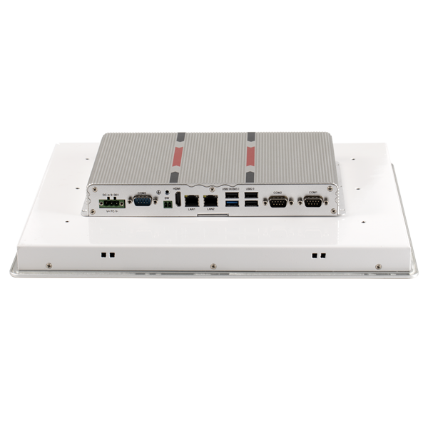外观设计 : 铝型材一体成型,纯平面流线型设计,科技时尚稳定可靠 : 纯工业无风扇设计,大面积铝鳍散热,箱体材质可抗接触式6Kv强电磁干扰,前面板符合IP65防尘防水等级,DC9-36V宽压输入或DC12V输入(可选)高性能 : J1900处理器接口丰富 : 2*LAN(Realtek),5*COM,6*USB,8路GPIO, 1*SW(远程开关),1*HDMI, 1*Audio, 支持一个Msata ,一个2.5寸硬盘位,一个MINI PCIE(默认WIFI,可选4G)人机界面友好 : 纯屏10点工规电容触控,操作更便利